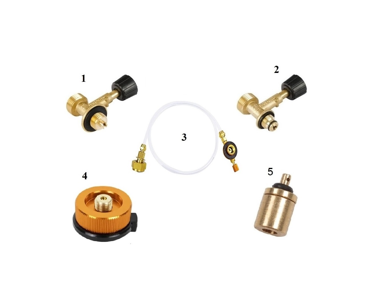 3. Silindir tüp dolum adaptörü : Piknik tüpünden silindir tüpe gaz aktarmaya veya kamp oçaklarını direk silindir tüpe bağlamaya yarar.
