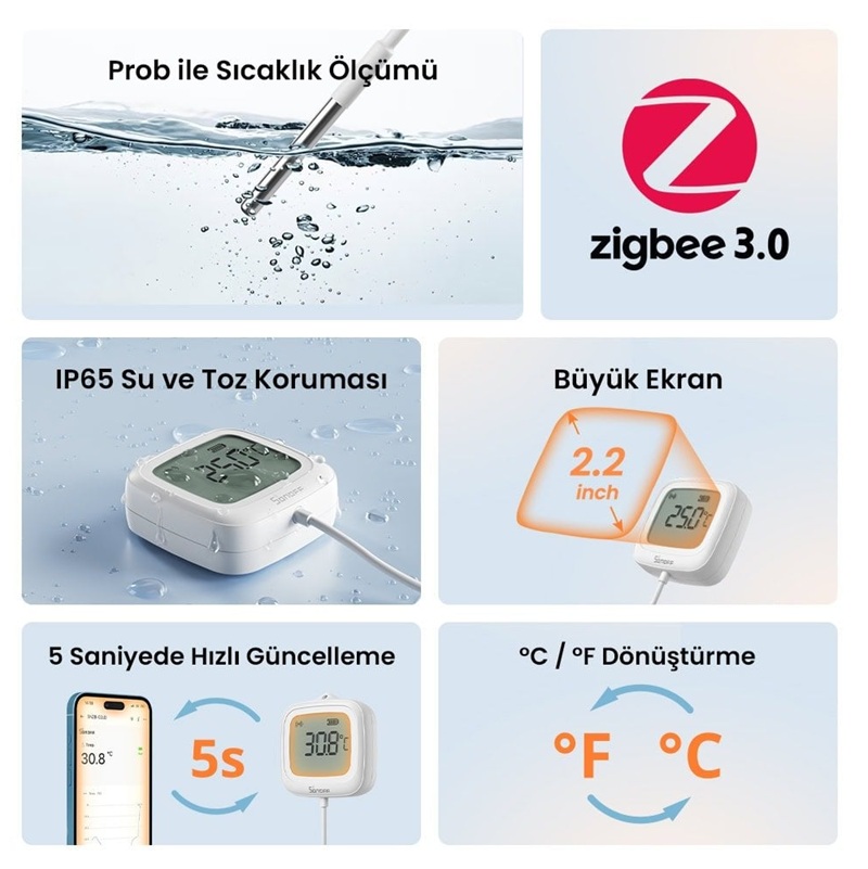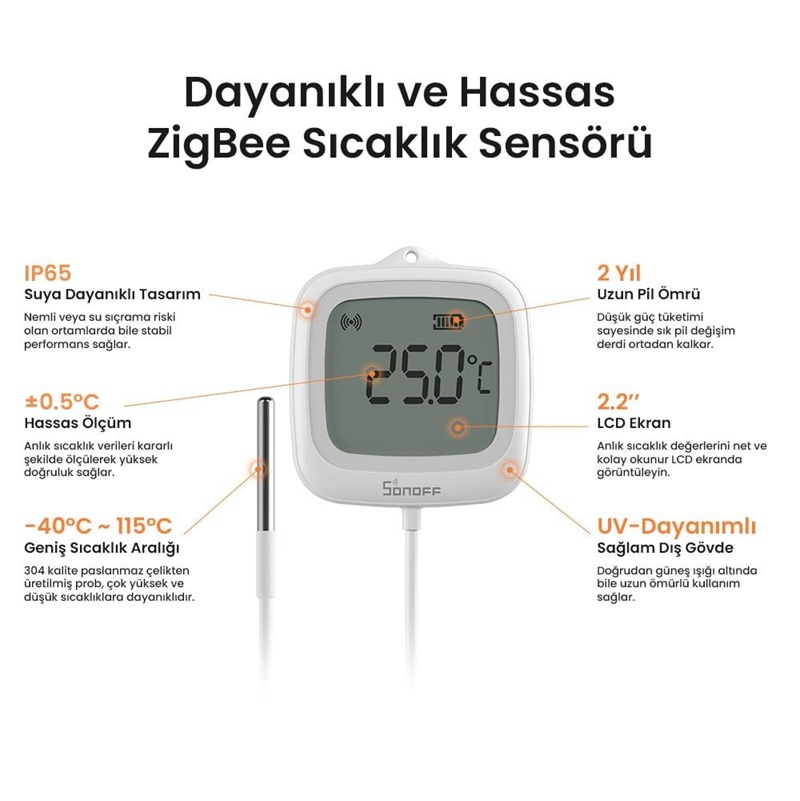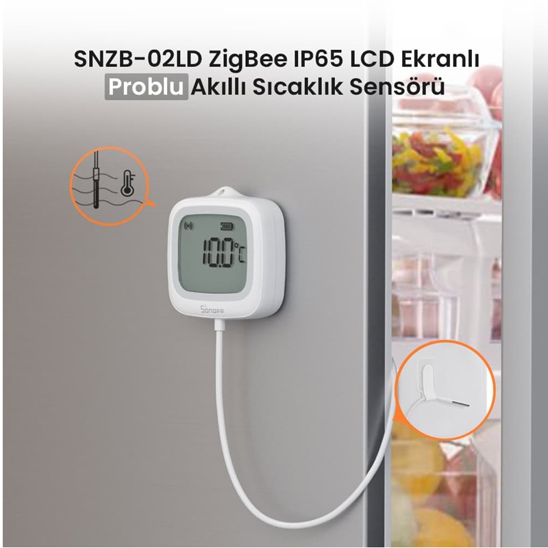 SNZB-02LD ZigBee IP65 LCD Ekranlı Problu Akıllı Sıcaklık Sensörü