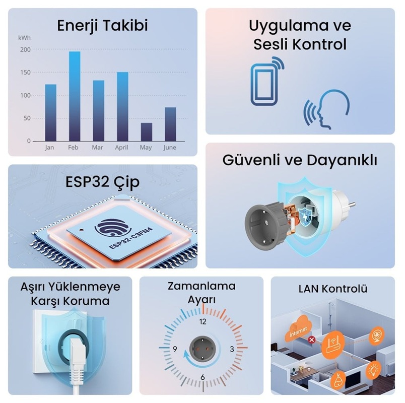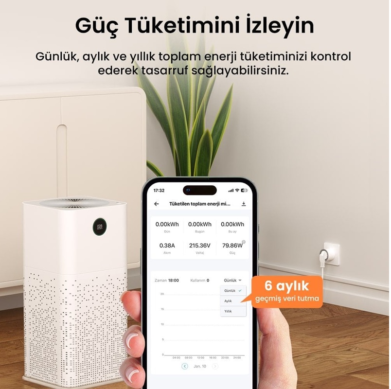 Enerji Takibi: Telefon uygulaması üzerinden anlık olarak enerji tüketiminizi takip edin. Günlük, aylık ve yıllık enerji tüketimini kontrol ederek elektrik faturalarınızda tasarruf edin.
