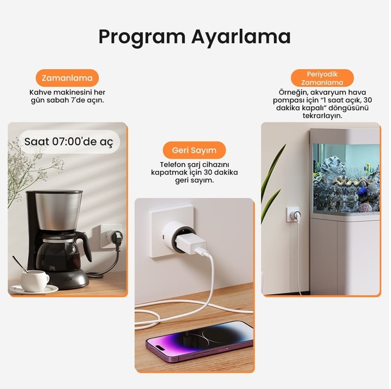 Zamanlayıcı: S60 prizinizi, ev aletlerinizi otomatik olarak açıp kapatmak için zamanlayıcı veya geri sayım zamanlaması kullanın.