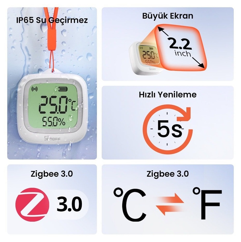 SONOFF SNZB-02WD ZigBee IP65 LCD Ekranlı Akıllı Sıcaklık ve Nem Sensörü