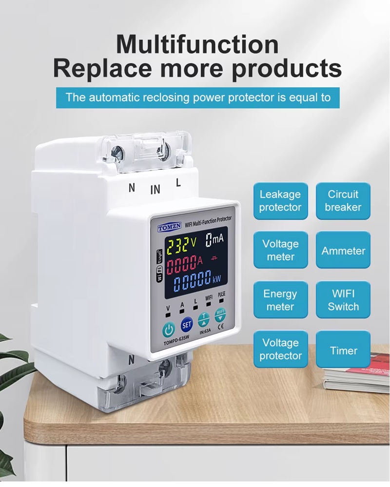 Tomzn Kaçak Akım Koruma Rölesi Yüksek Voltaj Ve Akım Koruyucu Röle 63A Wifi TOMPD-63SW