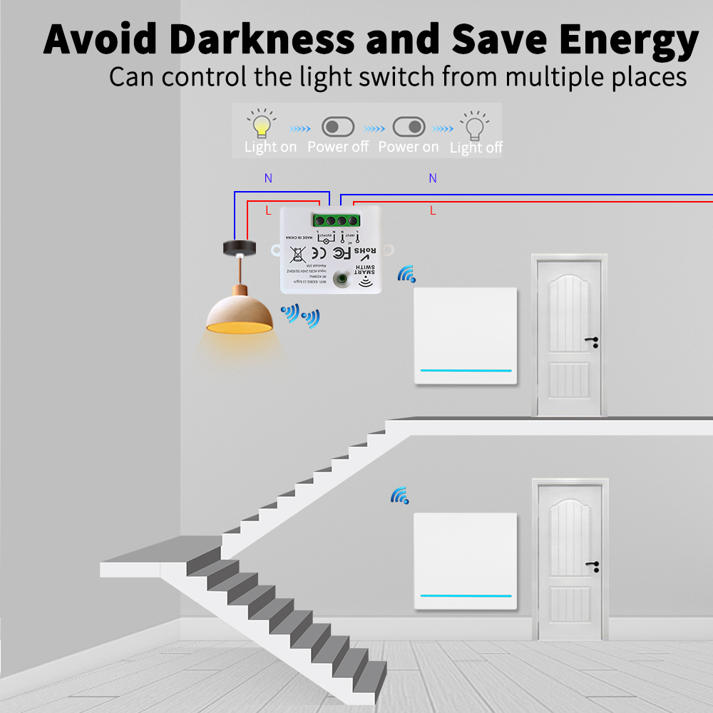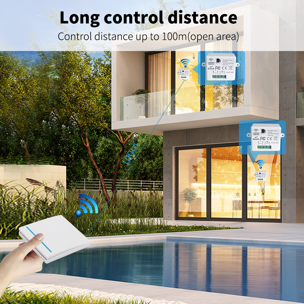 Kolaylık ve kablosuz kontrol : 2 düğmeli beyaz Akıllı Kablosuz Anahtar, ev otomasyonunu basit ve şık hale getiriyor. Güvenilir 433 MHz RF sinyali ile, evinizin herhangi bir yerinden tek bir düğmeye basarak ışıkları, vantilatörleri veya ev aletlerini anında kontrol edebilirsiniz.